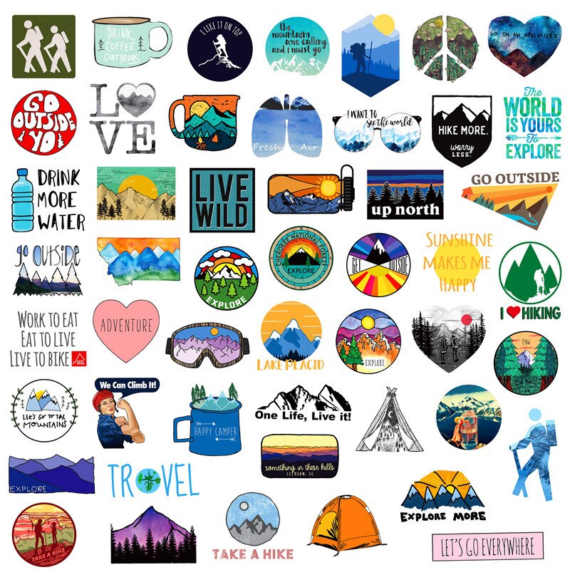 50 PCS Camping Landscape Hiking Stickers Outdoor Adventure Climbing Sticker Pack to DIY Luggage Suitcase Laptop Helmet Car Decal